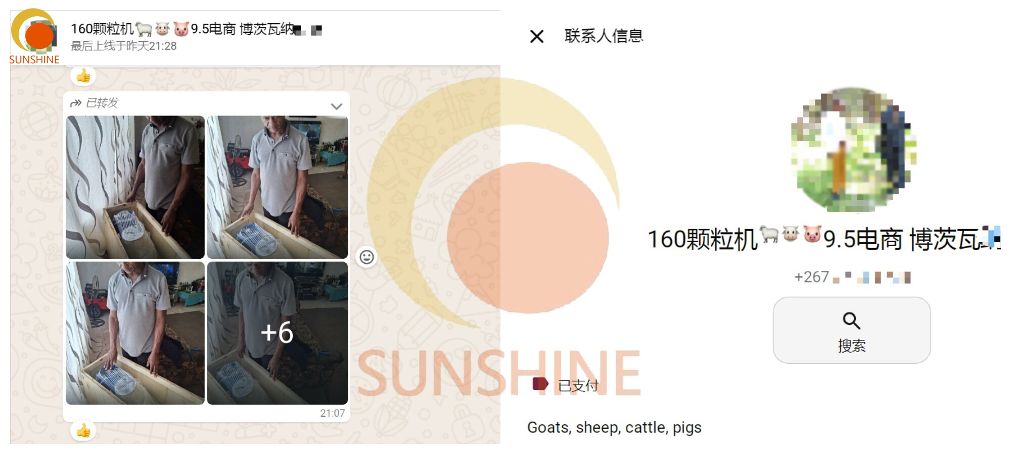 SUNSHINE Industrial's customer payment and delivery photos
