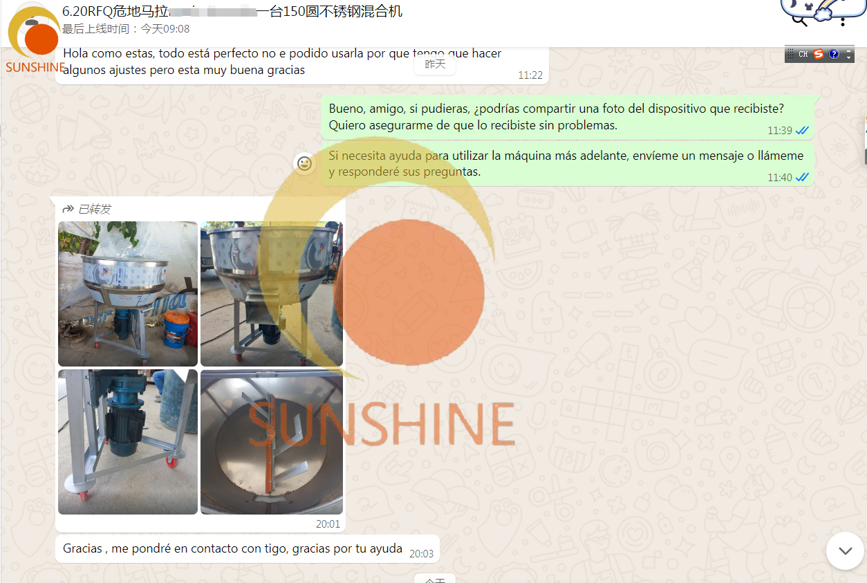 SUNSHINE Industrial's customer in Guatemala received the circular stainless steel mixer